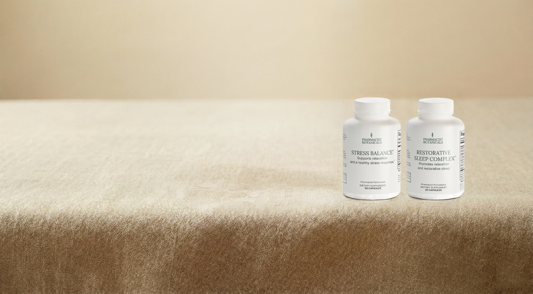 Two clean, pharmacist-formulated essentials designed for calmer days and restorative nights.